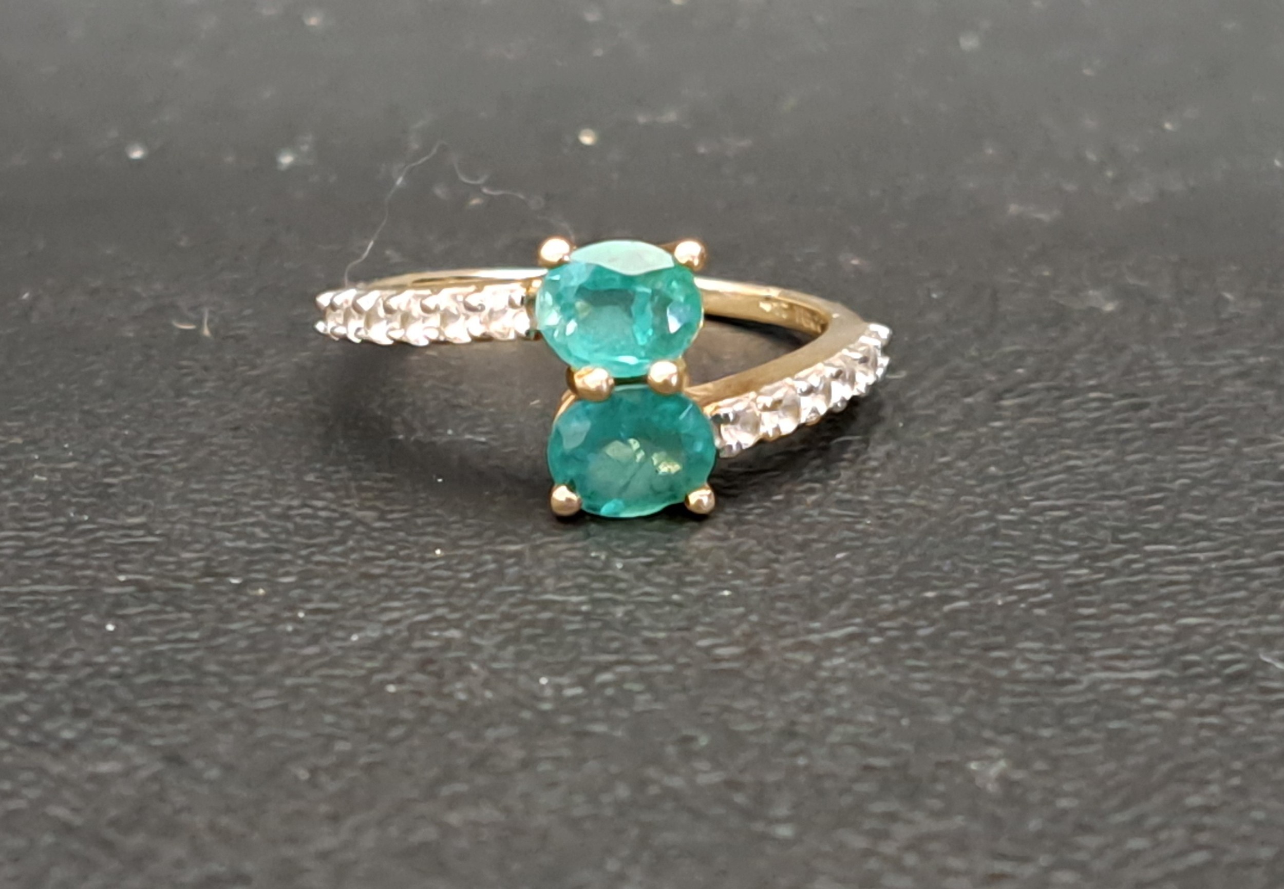 EMERALD AND WHITE ZIRCON TWIST DEIGN RING