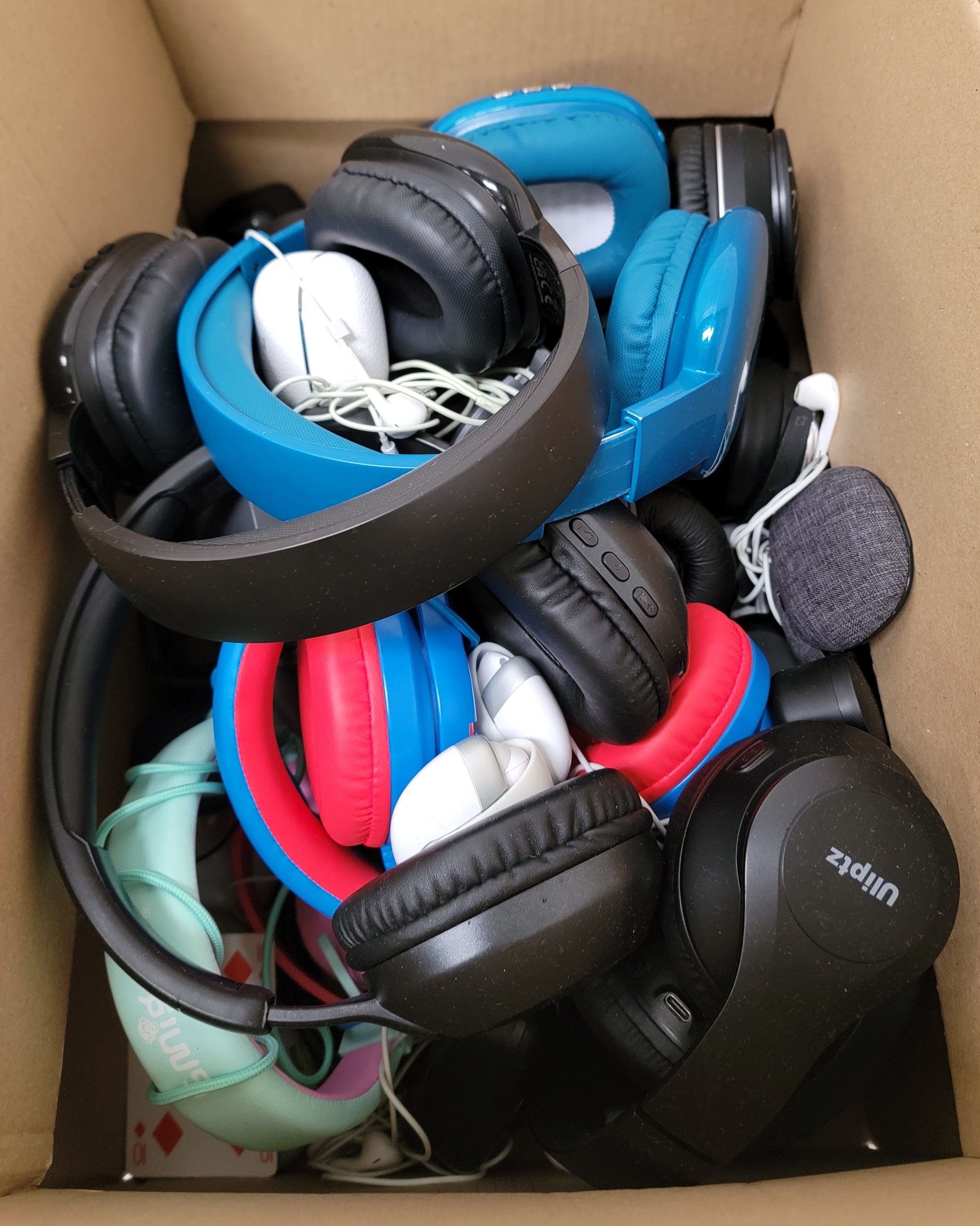 ONE BOX OF HEADPHONESincluding Smiggle, Belkin and Goodmans