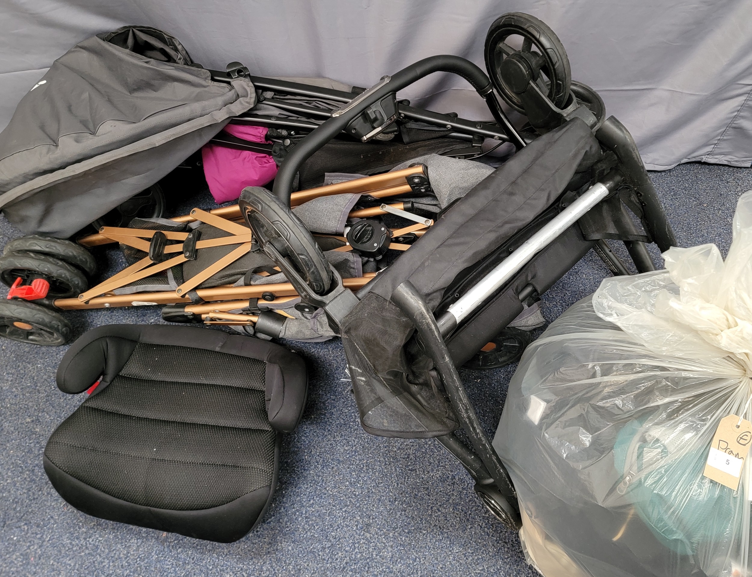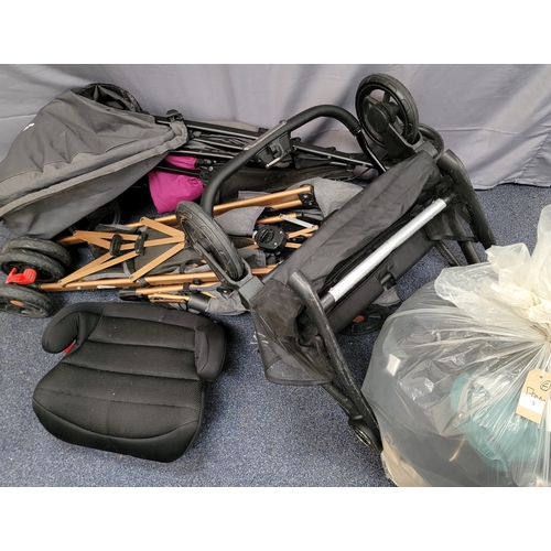 SELECTION OF THREE BUGGIES, ONE BOOSTER SEAT, AND ONE BAG OF BABY/PRAM ACCESSORIES (5)including Joie and Silver Cross