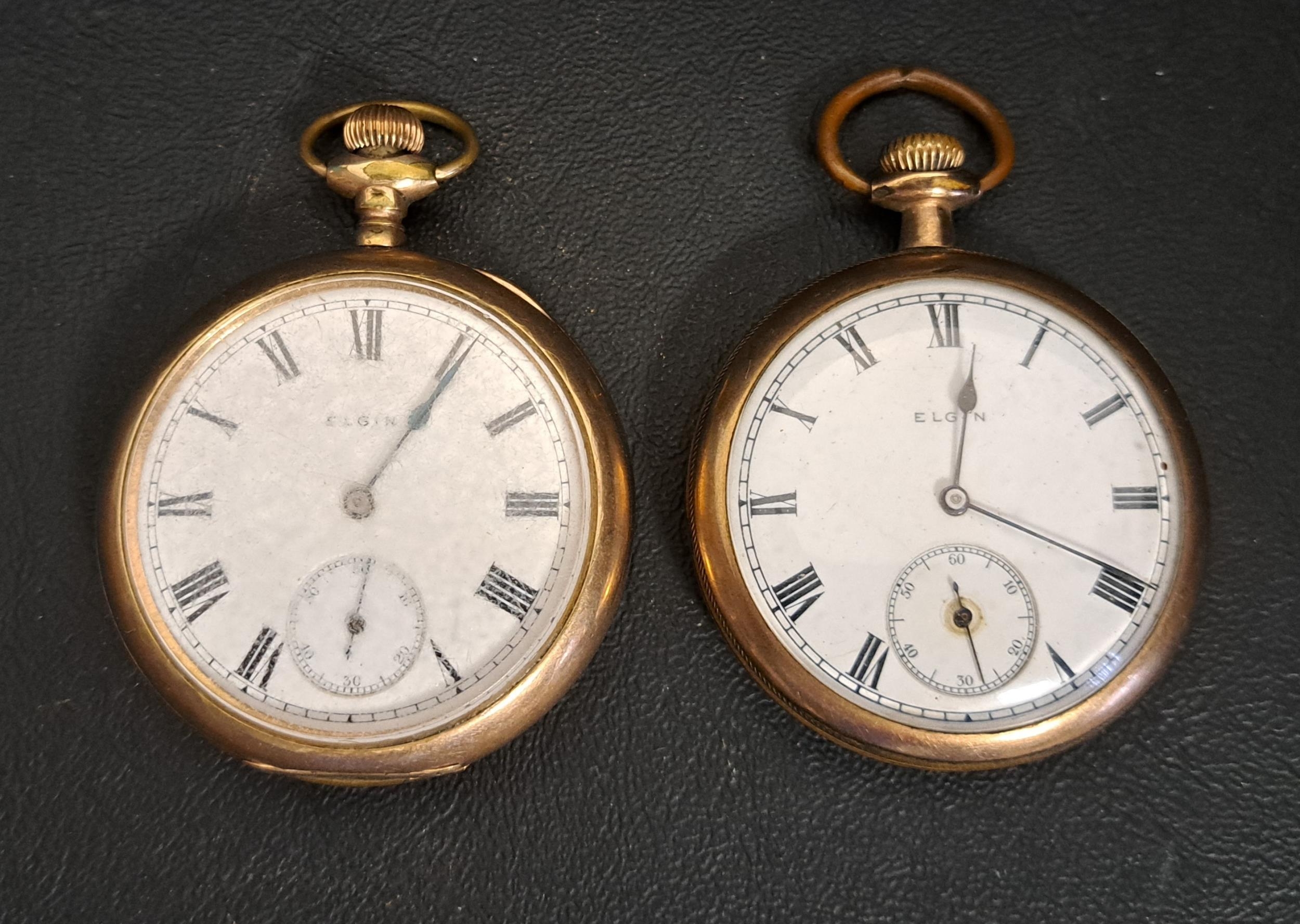 TWO GOLD PLATED ELGIN POCKET WATCHES