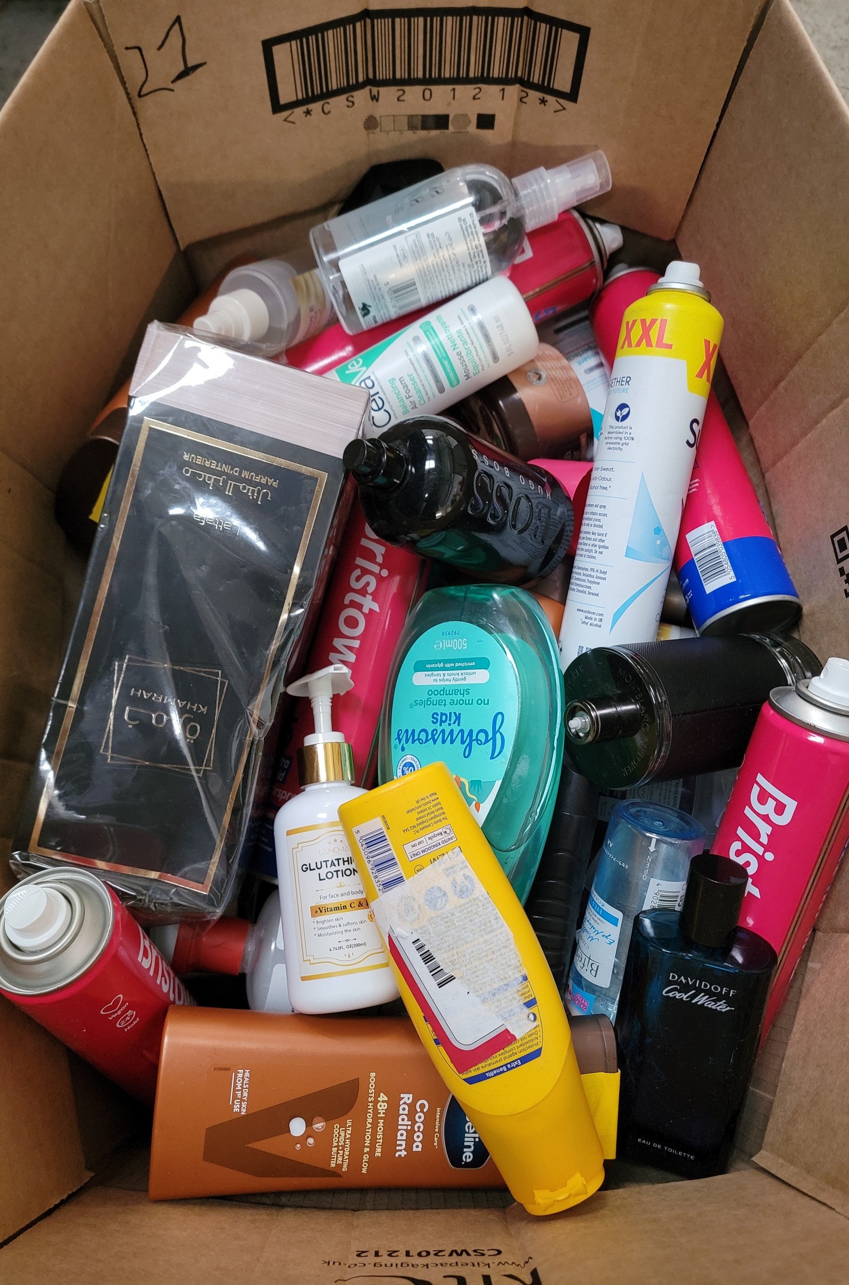 ONE BOX OF TOILETRIES AND COSMETICSincluding Davidoff, Avon and Boss
