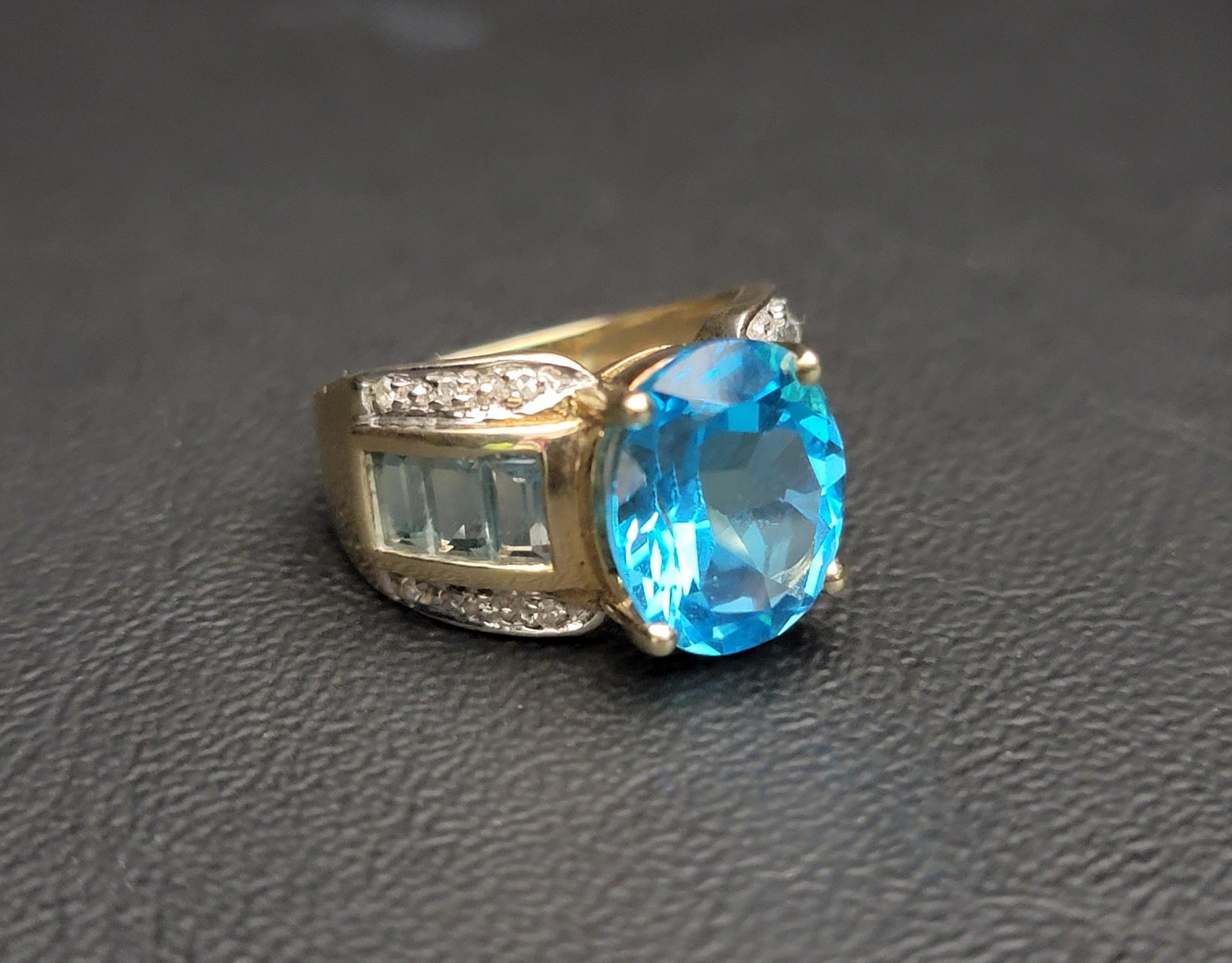 BLUE TOPAZ, AQUAMARINE AND DIAMOND DRESS RING