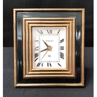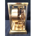 the clear dial with white chapter ring marked with Arabic numerals at 3, 6, 9 and 12 and with further five minute baton markers, in glazed case, serial number 250906, in original fitted box and with booklet, the clock measuring 22.5cm x 18cm x 13.5cm