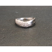 in ribbon effect twist setting, ring size J-K and approximately 5.3 grams