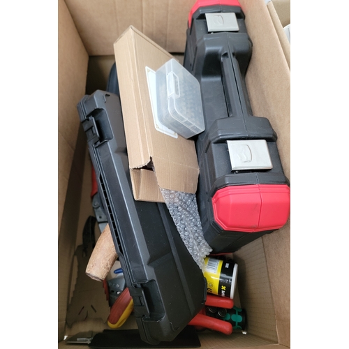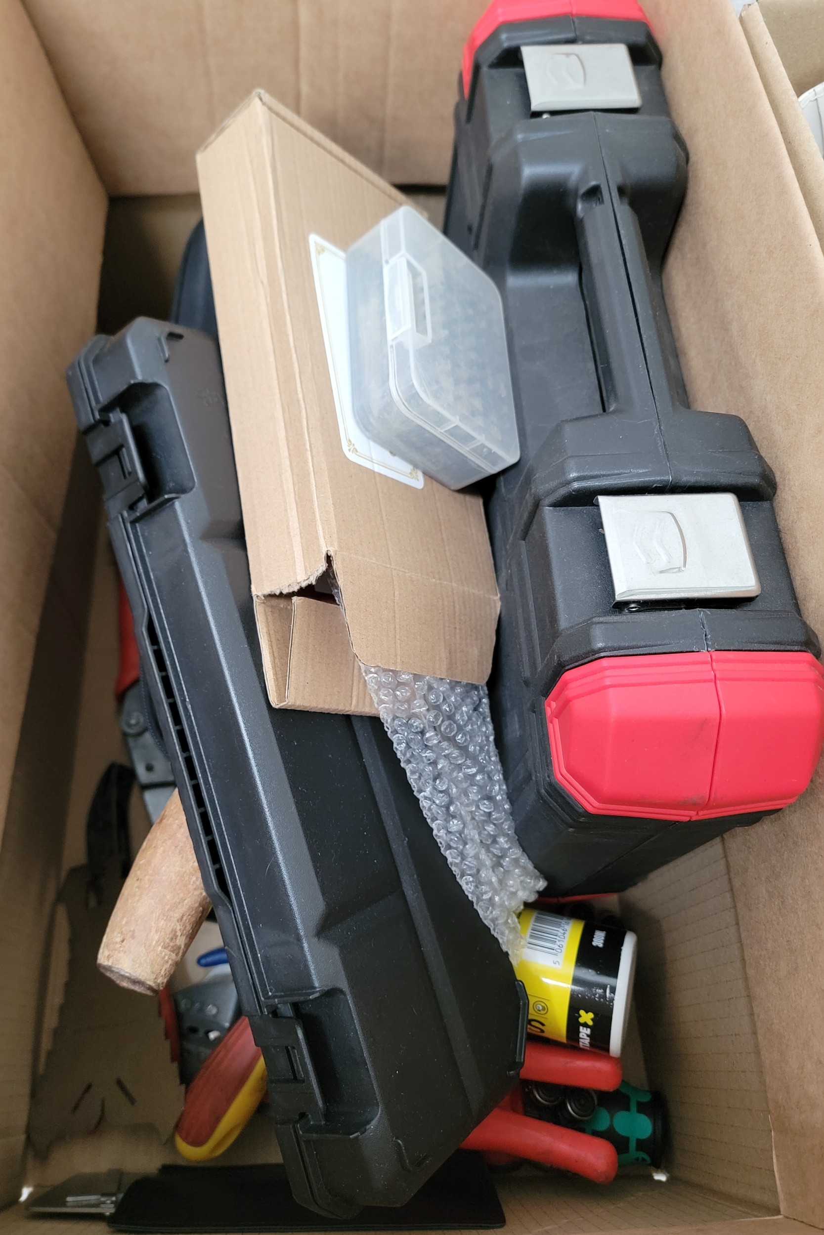ONE BOX OF TOOLSincluding a DeWalt drill, a Bosch hedge trimmer, and a socket wrench set