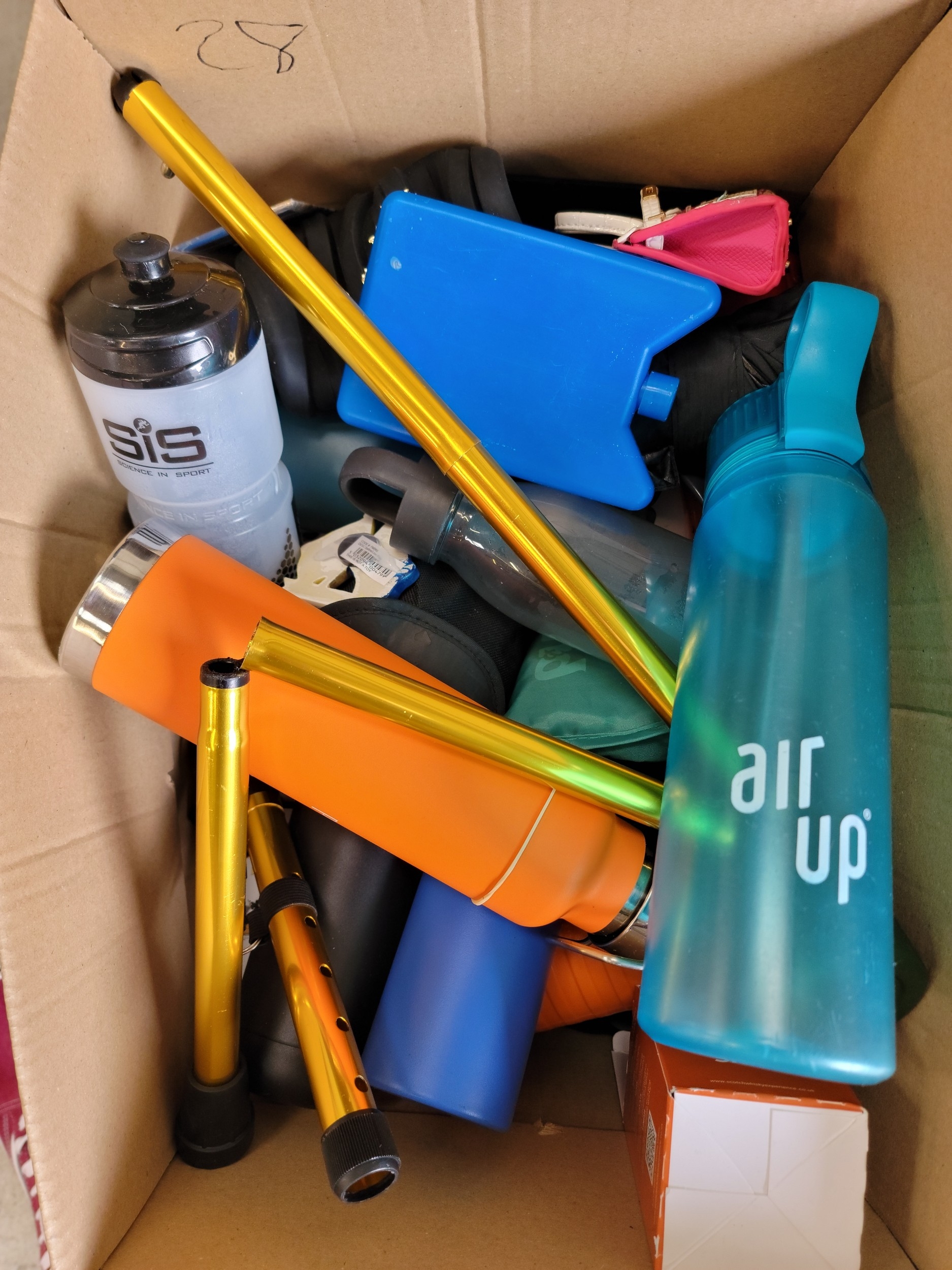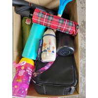 ONE BOX OF MISCELLANEOUS ITEMSincluding: water bottles, collapsible walking stick, magnets, etc.