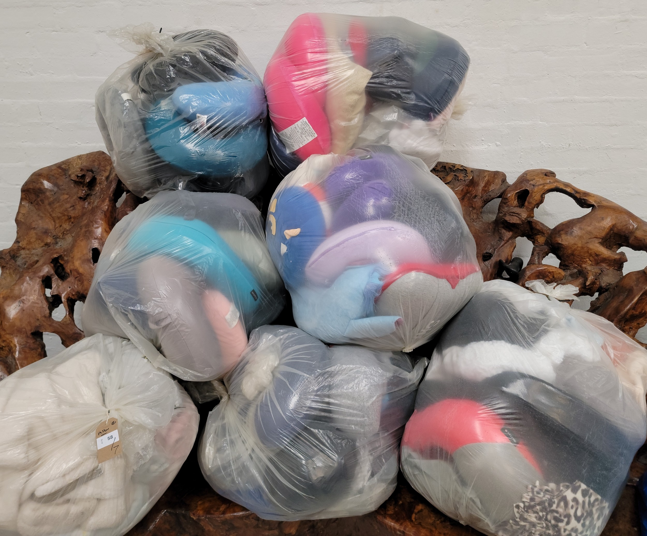 SEVEN BAGS OF PILLOWS AND BLANKETS