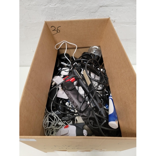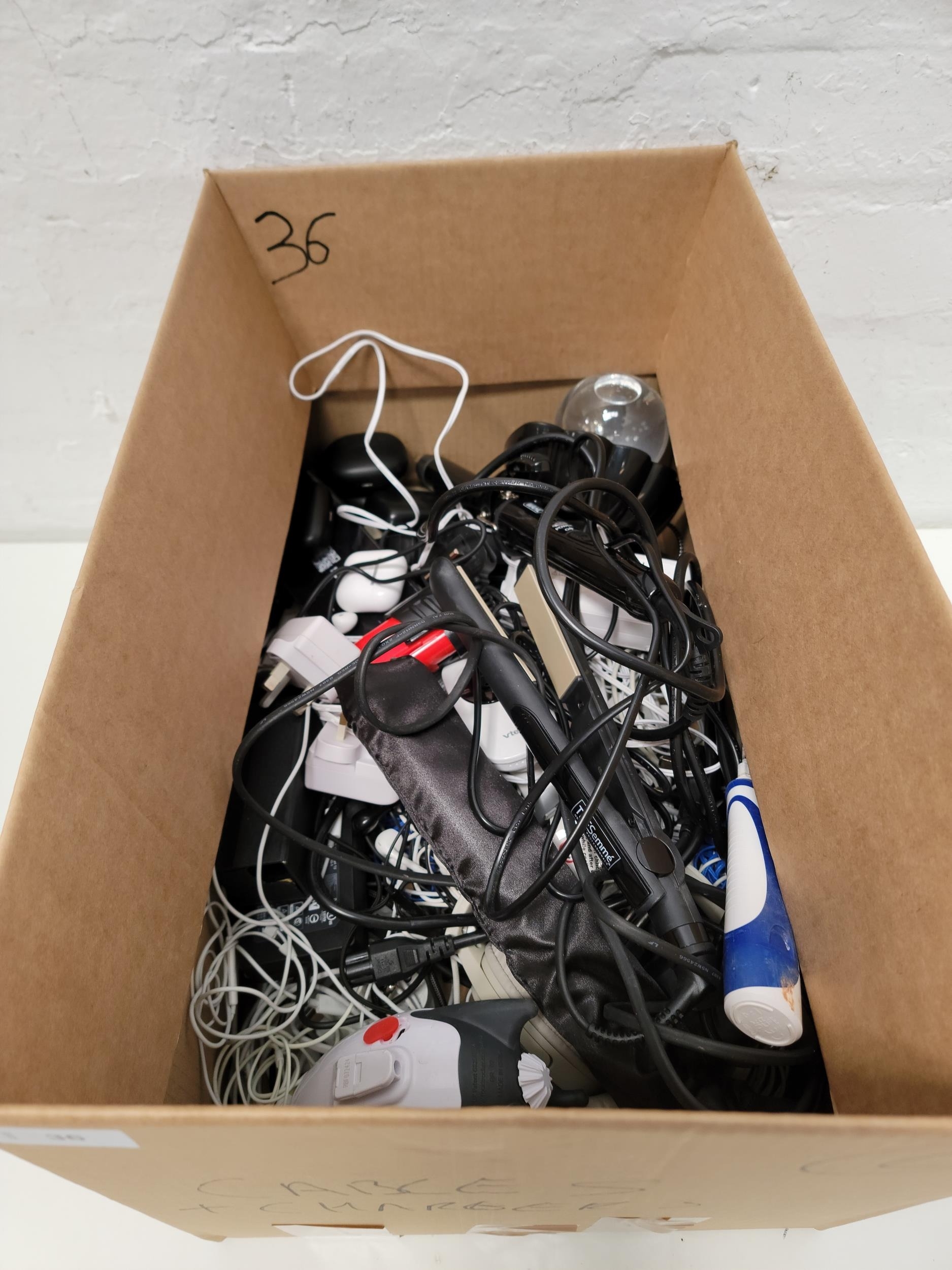 ONE BOX OF ELECTRICAL ITEMS, HEADPHONES, CABLES AND CHARGERS