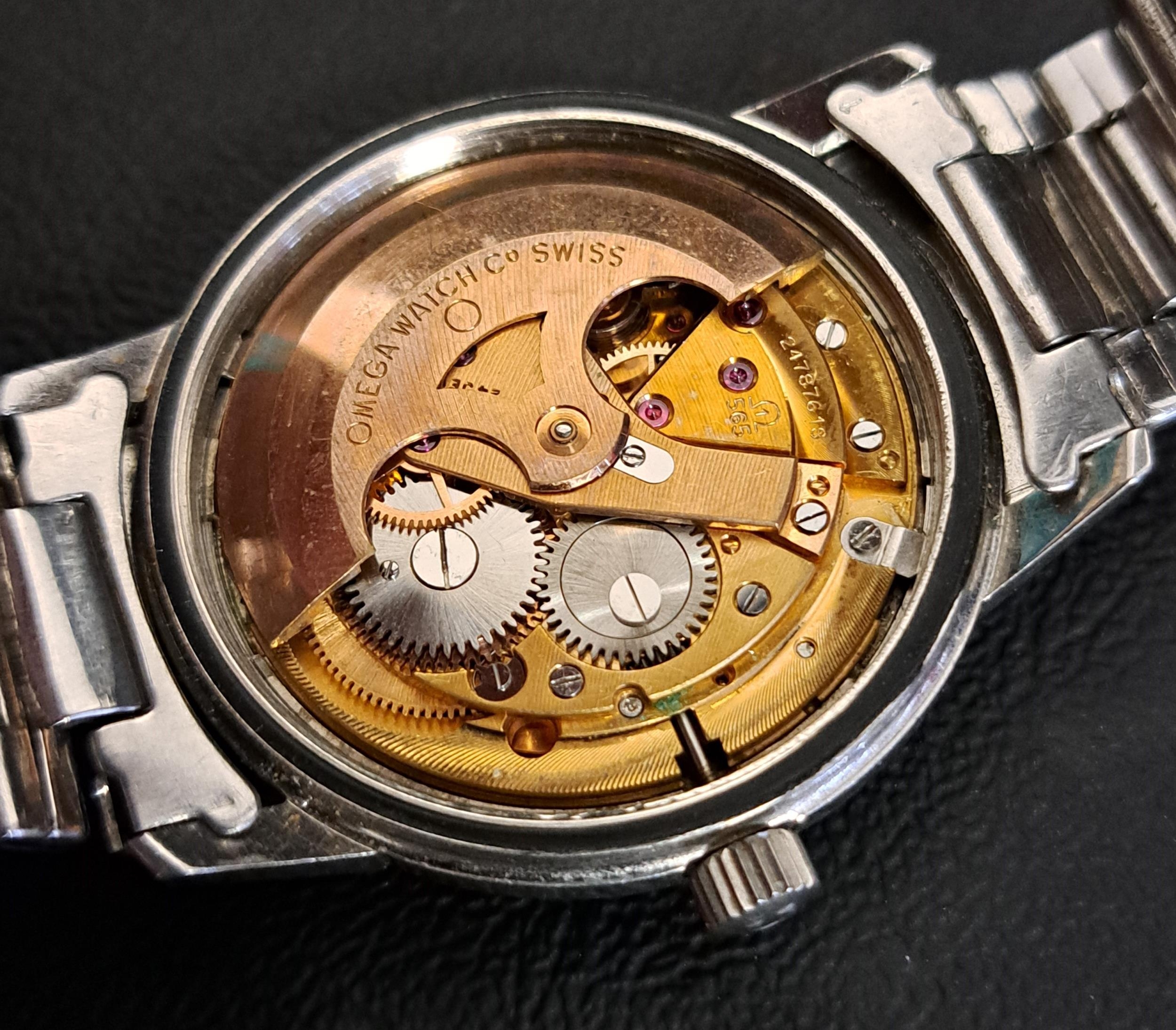 the silvered dial with baton five minute markers and date aperture at 3, on stainless steel Omega bracelet strap, the signed 24 jewels movement numbered 24787618 dating it to 1966