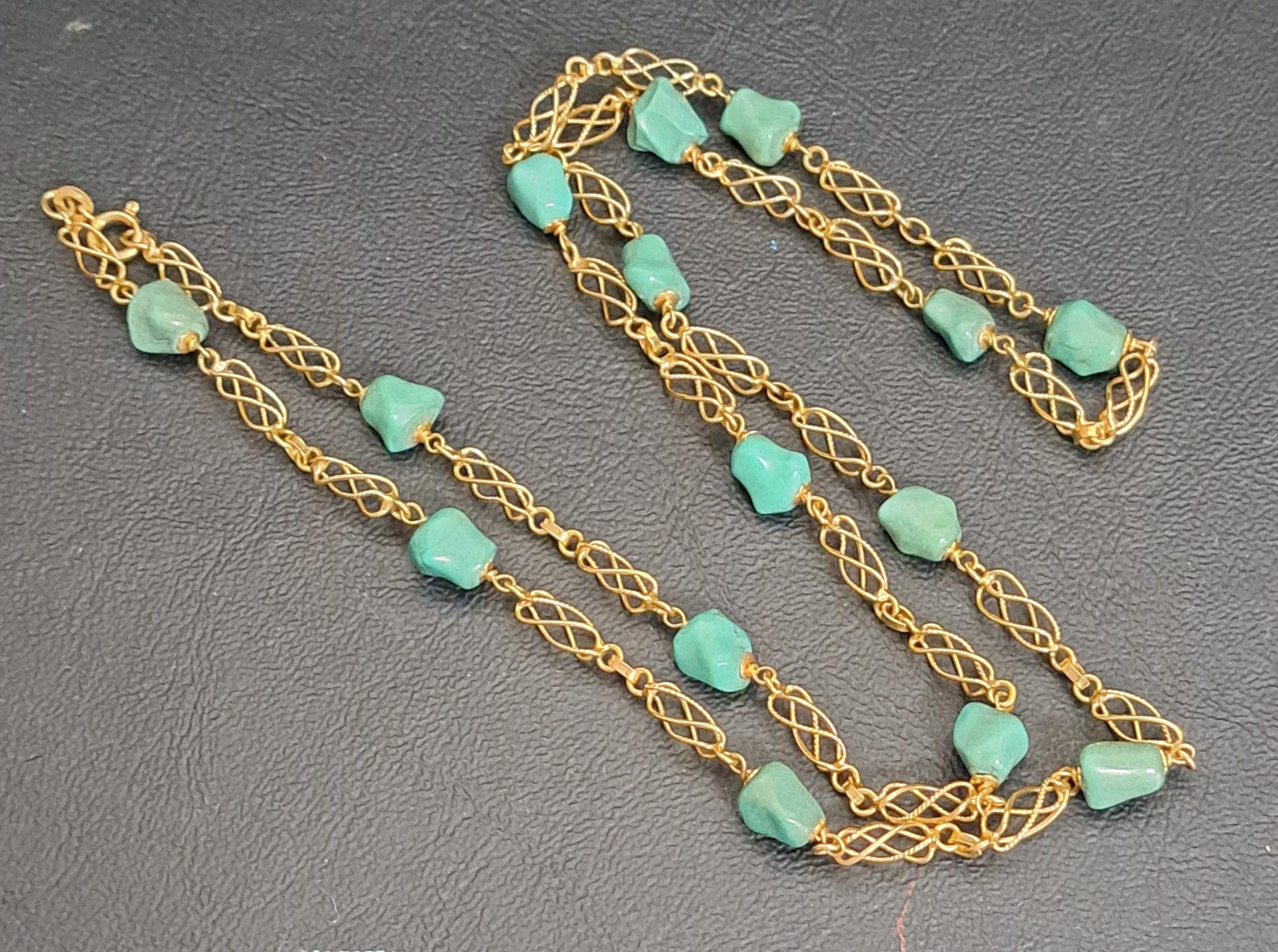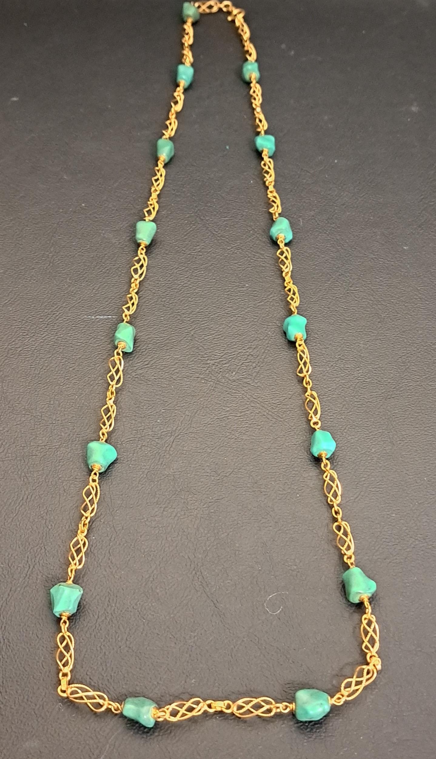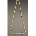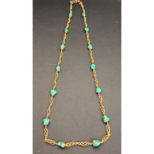 the fifteen irregular turquoise beads separated by entwined eighteen carat gold link sections, 69cm long and approximately 21.6 grams
