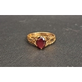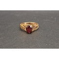 on nine carat gold shank with decorative pierced shoulders, ring size N-O and approximately 2 grams