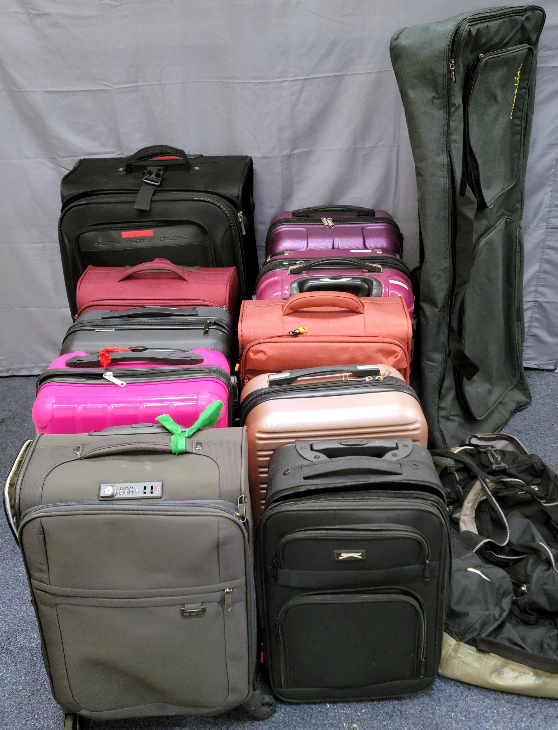 SELECTION OF TEN SUITCASES AND TWO HOLDALLS (12)
