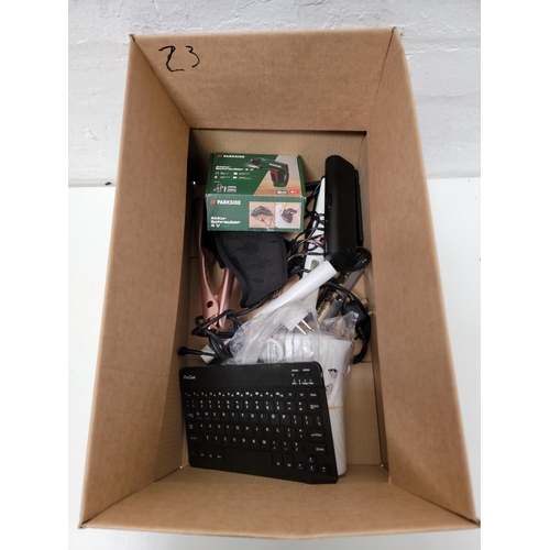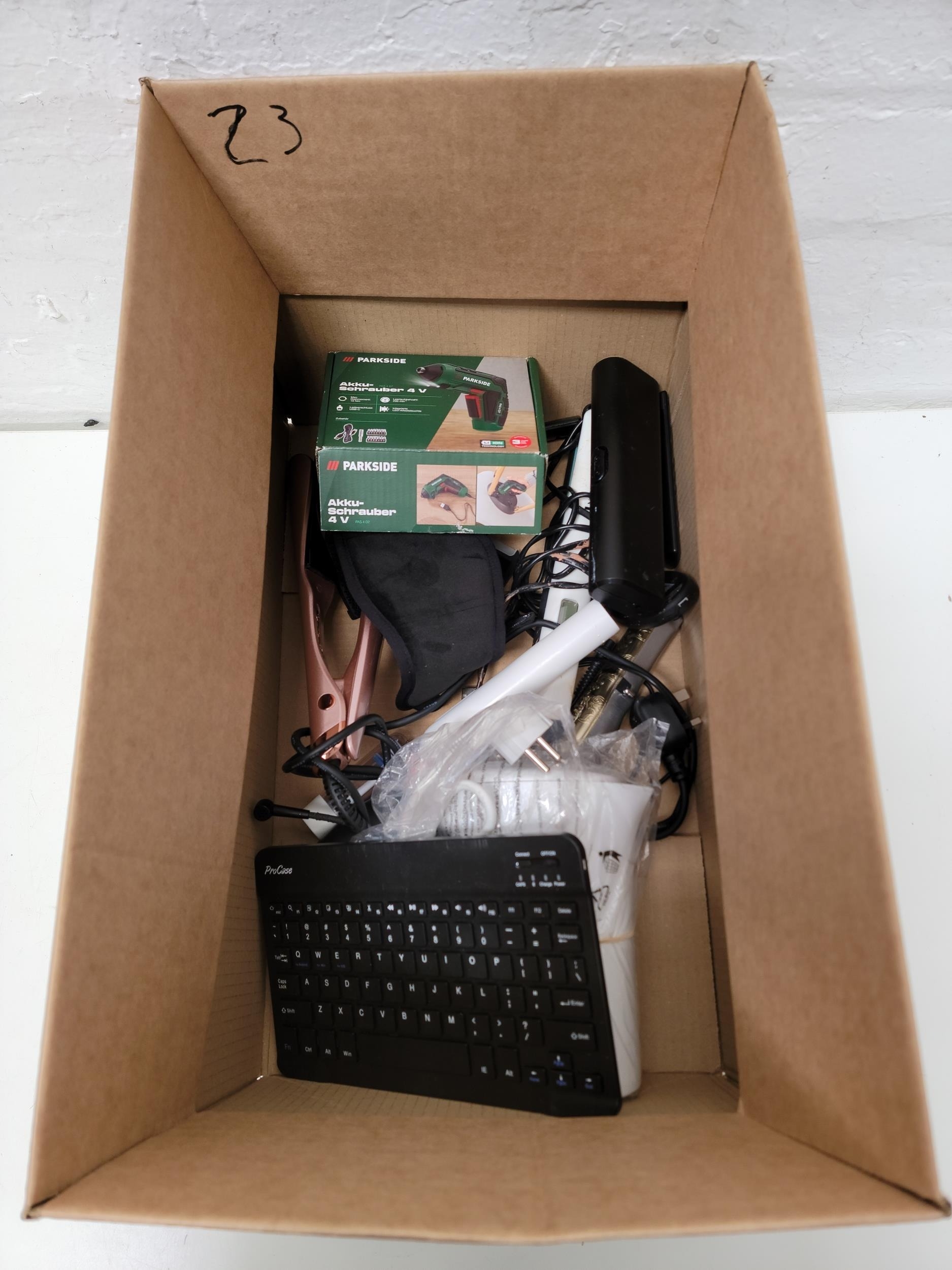 ONE BOX OF ELECTRICAL ITEMSincluding: a kettle, a keyboard, hair clippers and straighteners