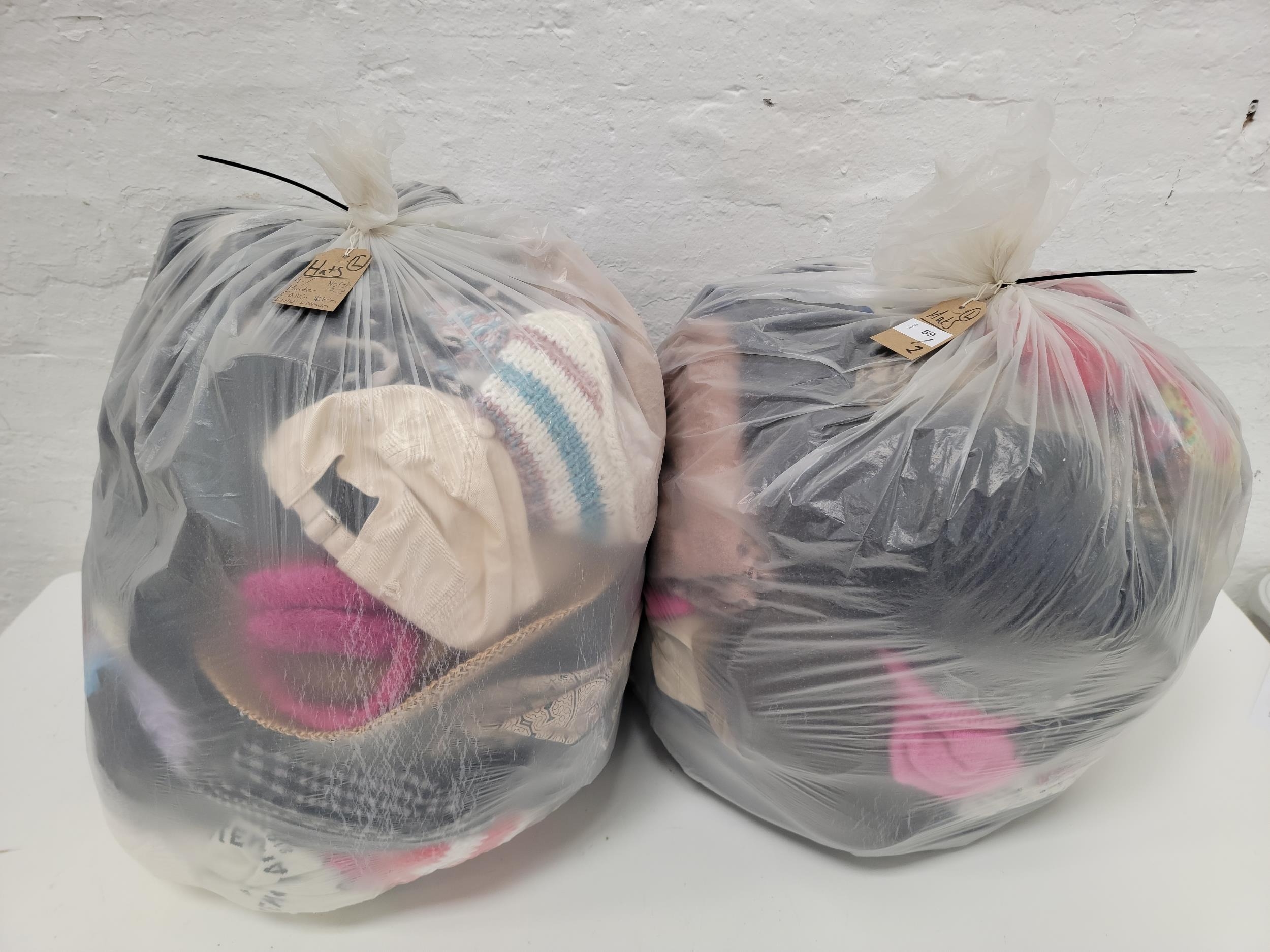 TWO BAGS OF HATS AND SCARVESincluding: North Face, Hunter, Lululemon and 47