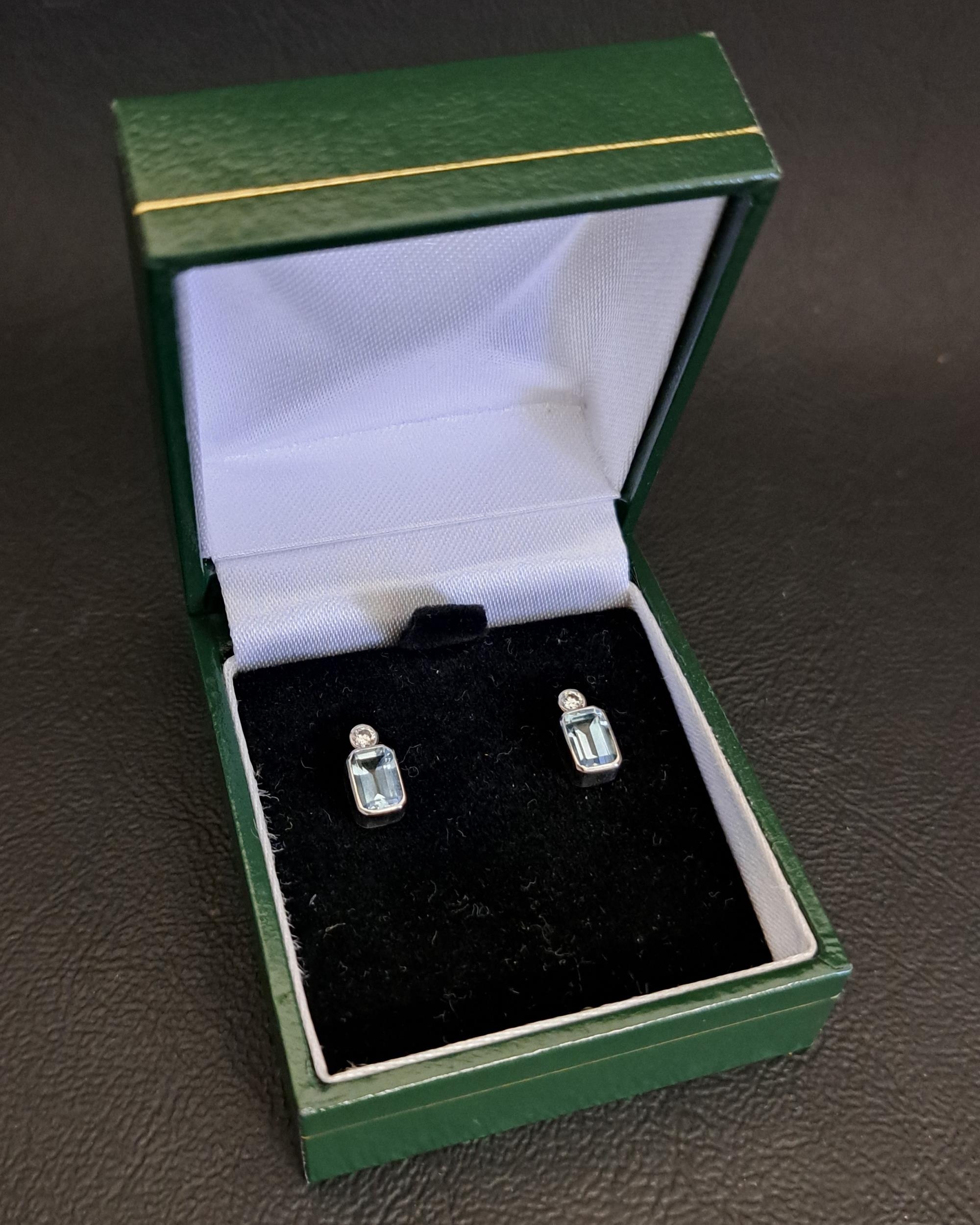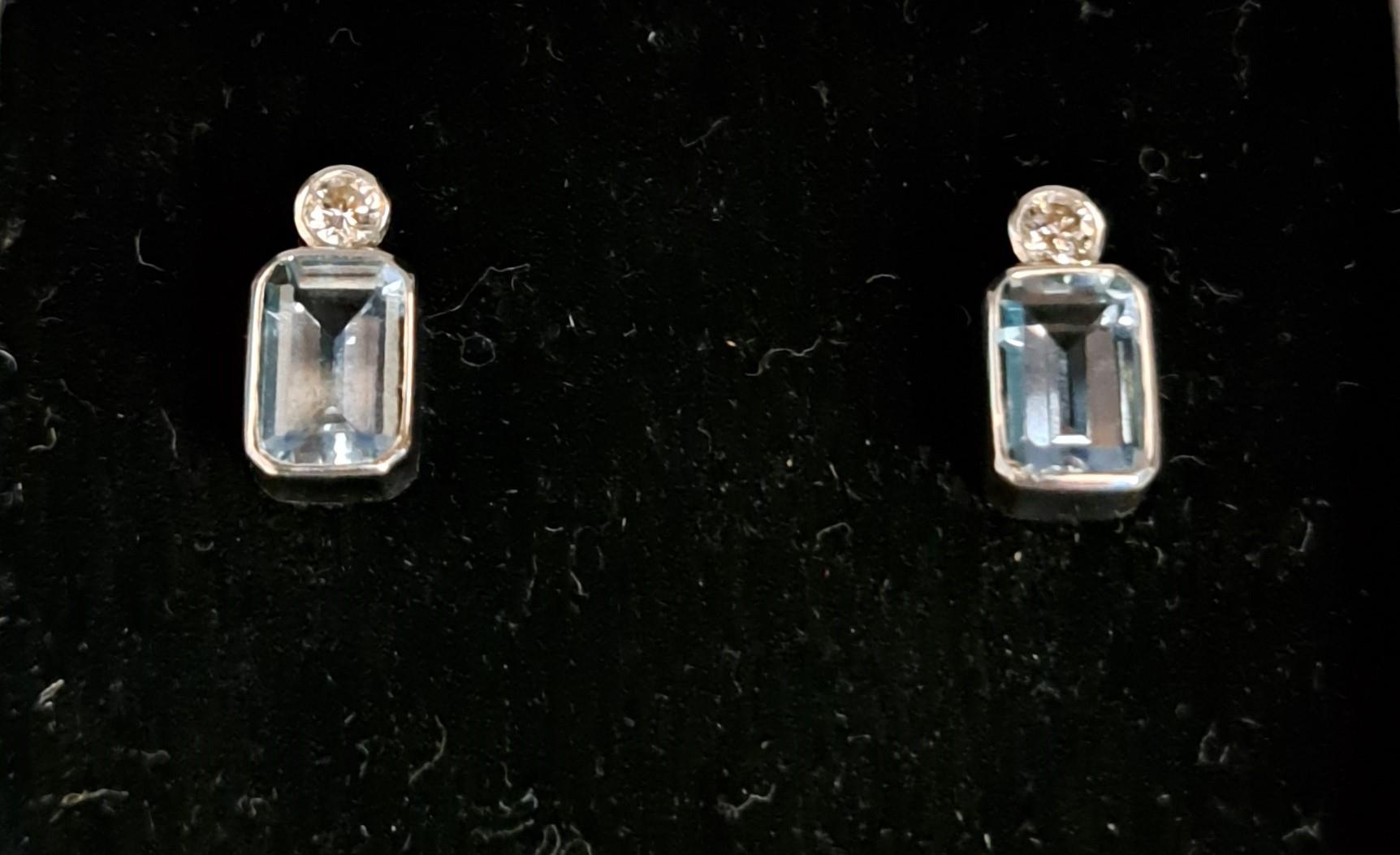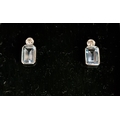 the rectangular cut aquamarine on each approximately 0.4cts (0.8cts in total) below small diamonds, in eighteen carat white gold