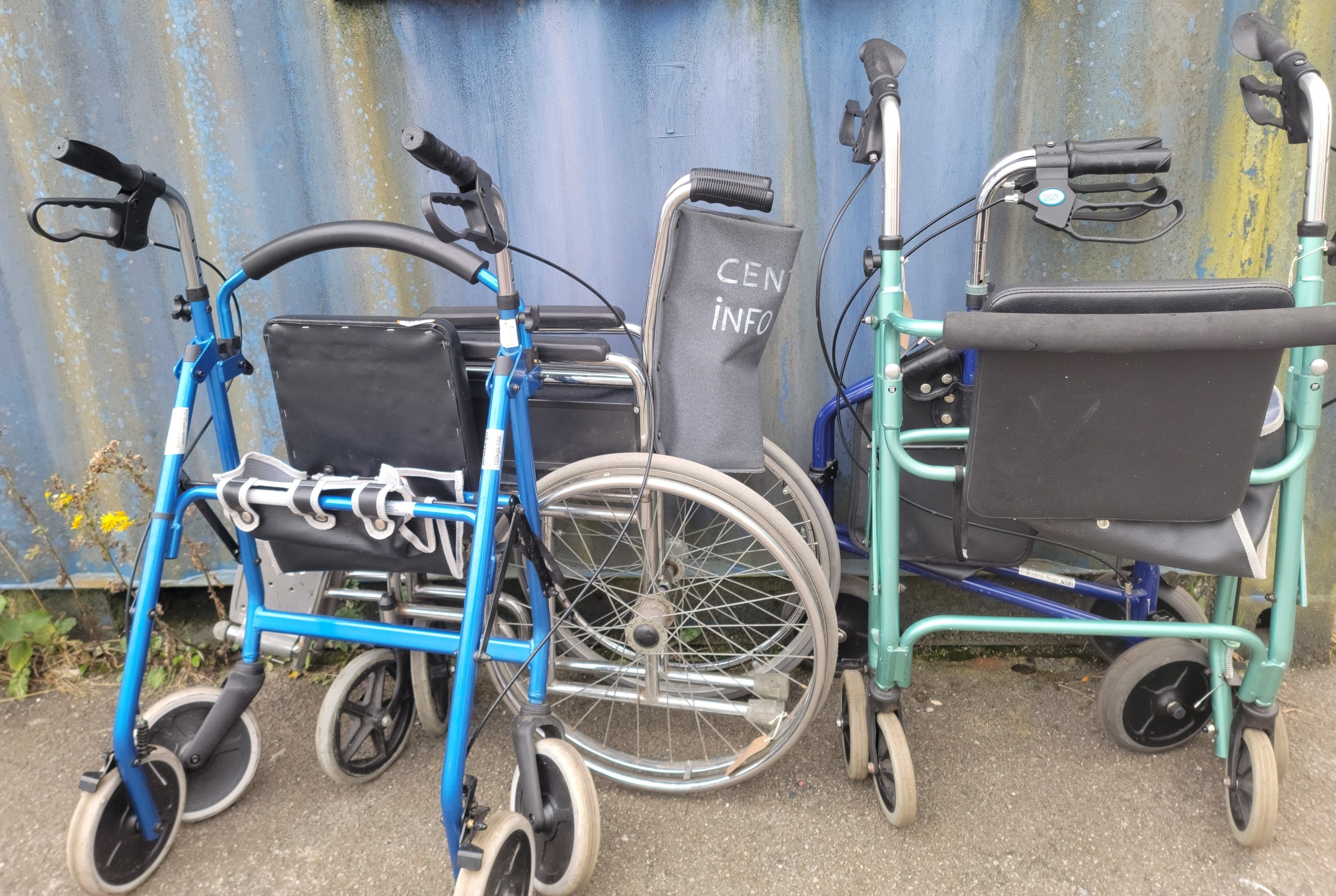 SELECTION OF MOBILITY AIDScomprising one wheelchair and three zimmer frames (4)