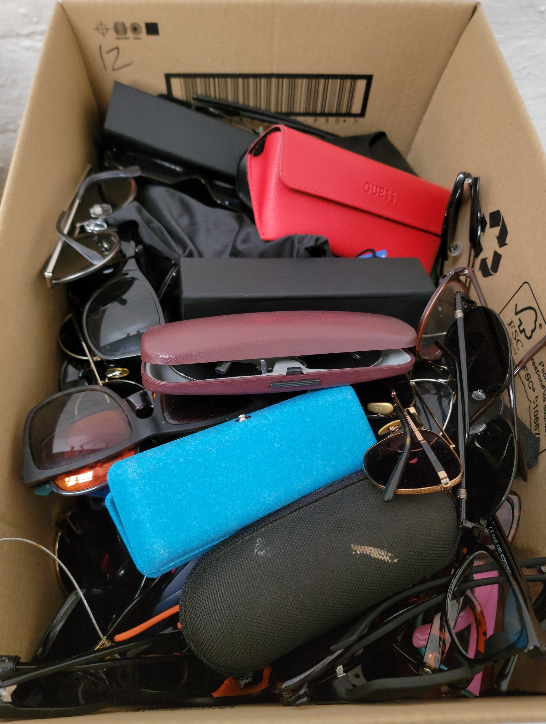 ONE BOX OF GLASSES AND SUNGLASSESNote: some may have prescription lenses