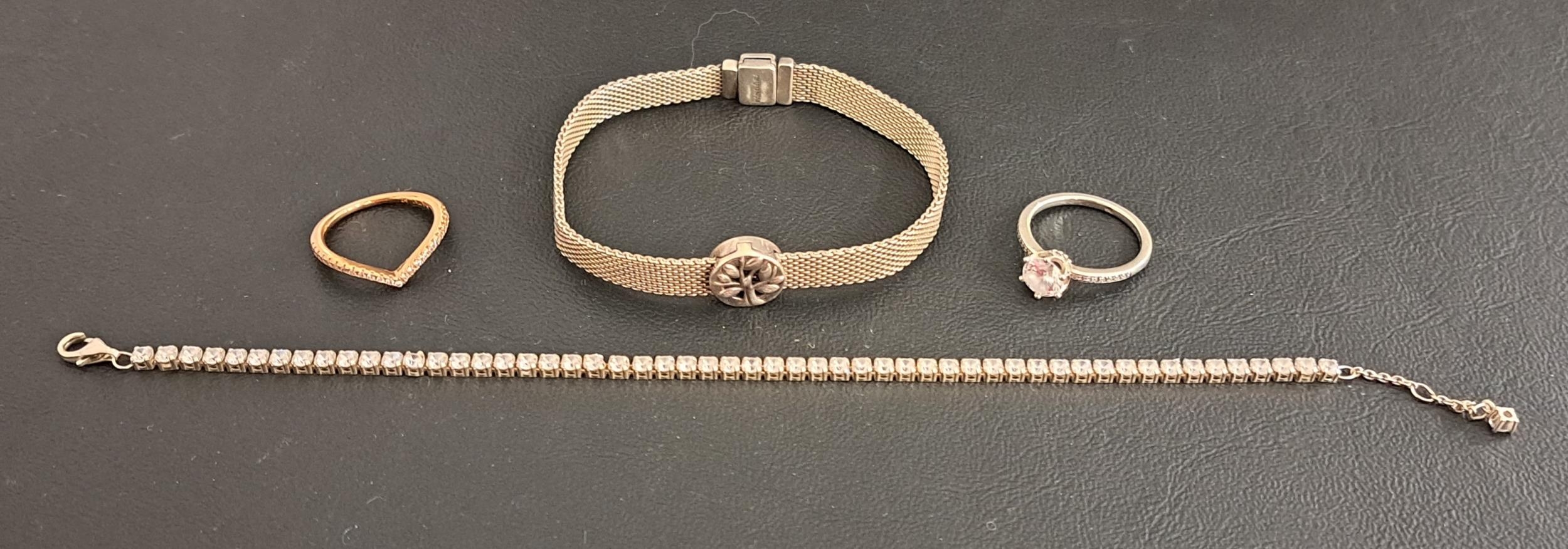 comprising a Reflexions silver mesh bracelet with one charm, a CZ set line bracelet, and two rings - Sparkling wishbone and Clear Sparkling Crown