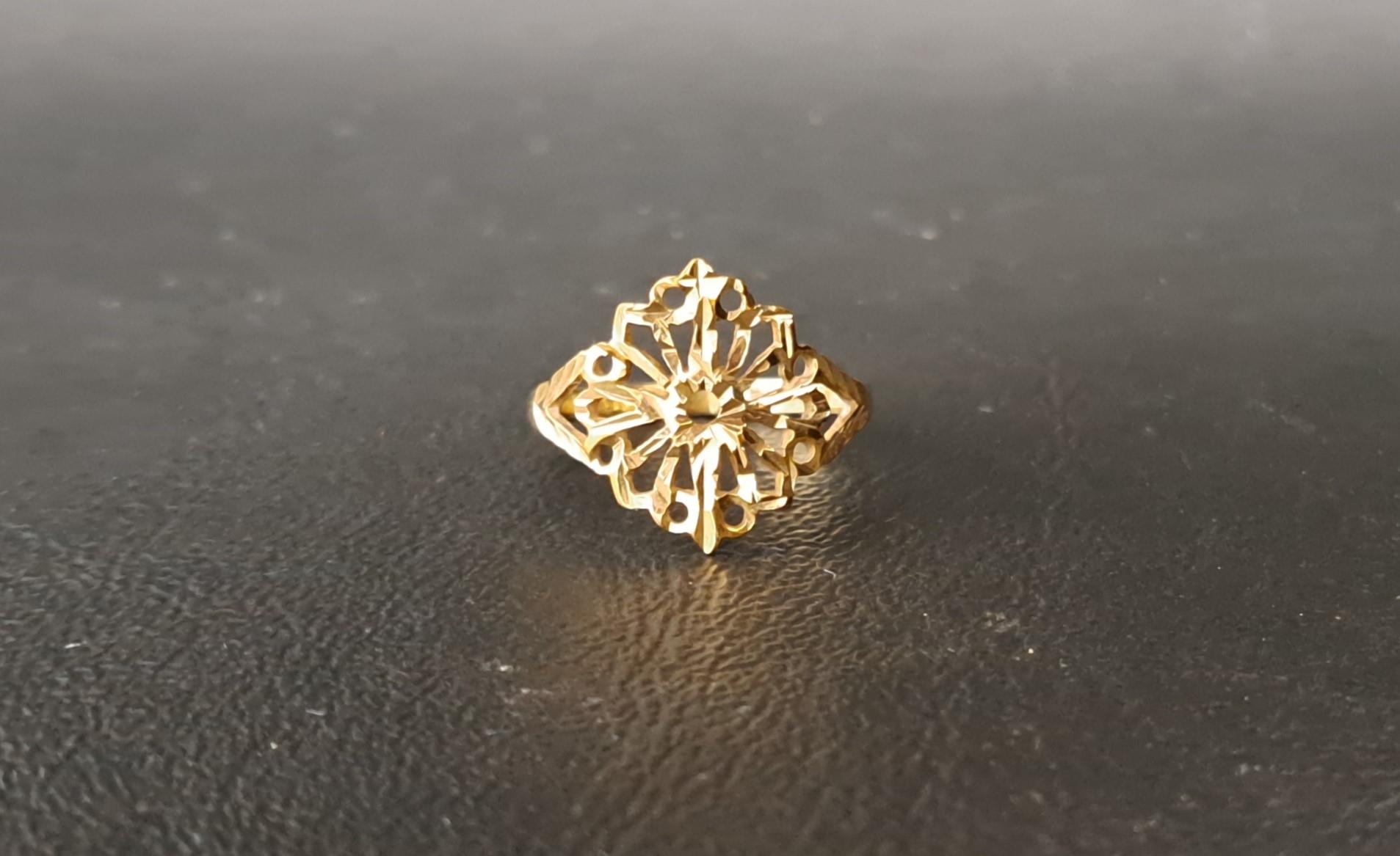 with decorative pierced decoration, ring size L and approximately 1.2 grams