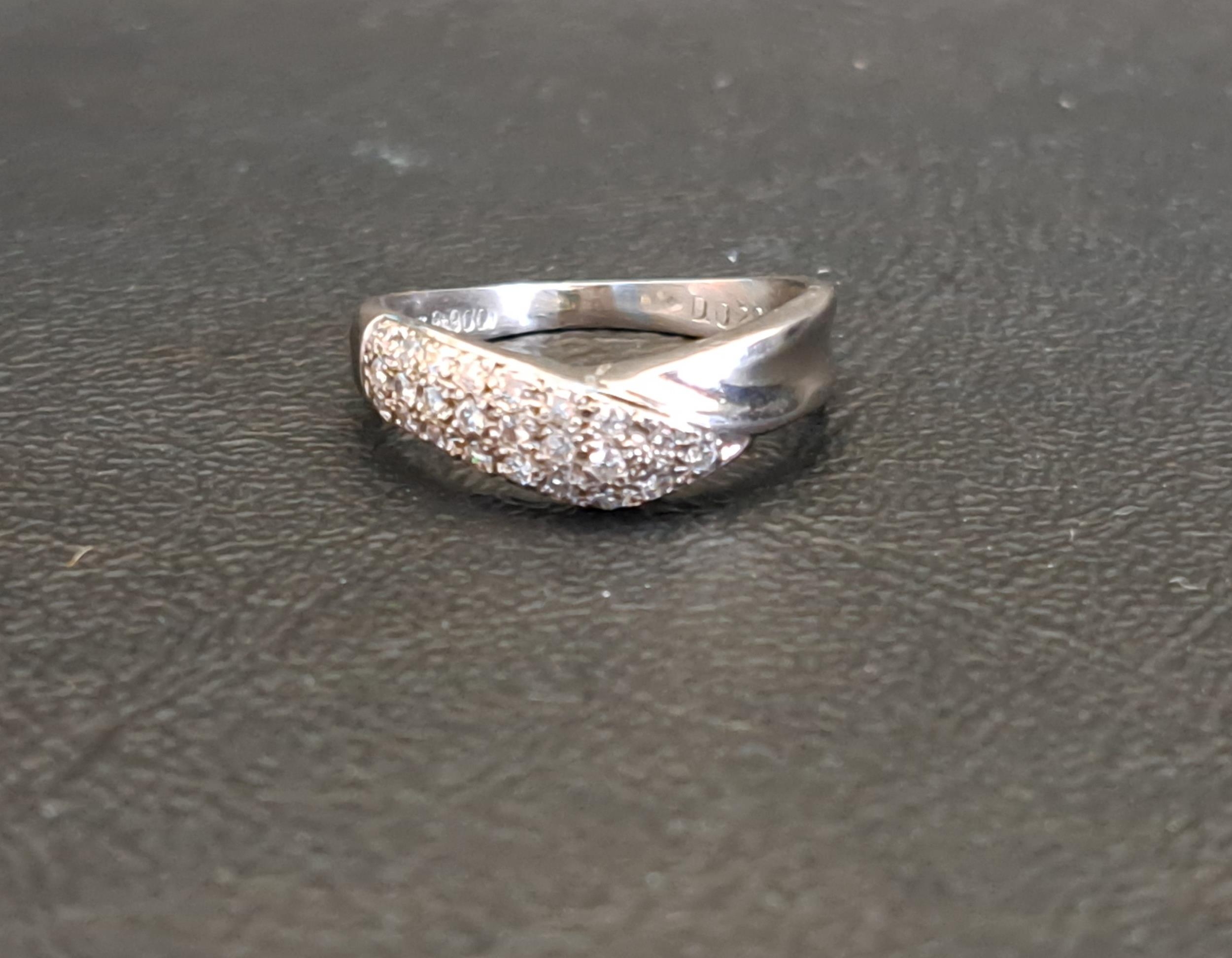 the diamonds totalling approximately 0.2cts, on platinum shank, ring size L and approximately 4.3 grams