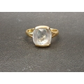 the tension set checkerboard cut gemstone measuring approximately 8.9 x 9.3 x 4.4mm, on eighteen carat gold shank, ring size L and approximately 3.7 grams