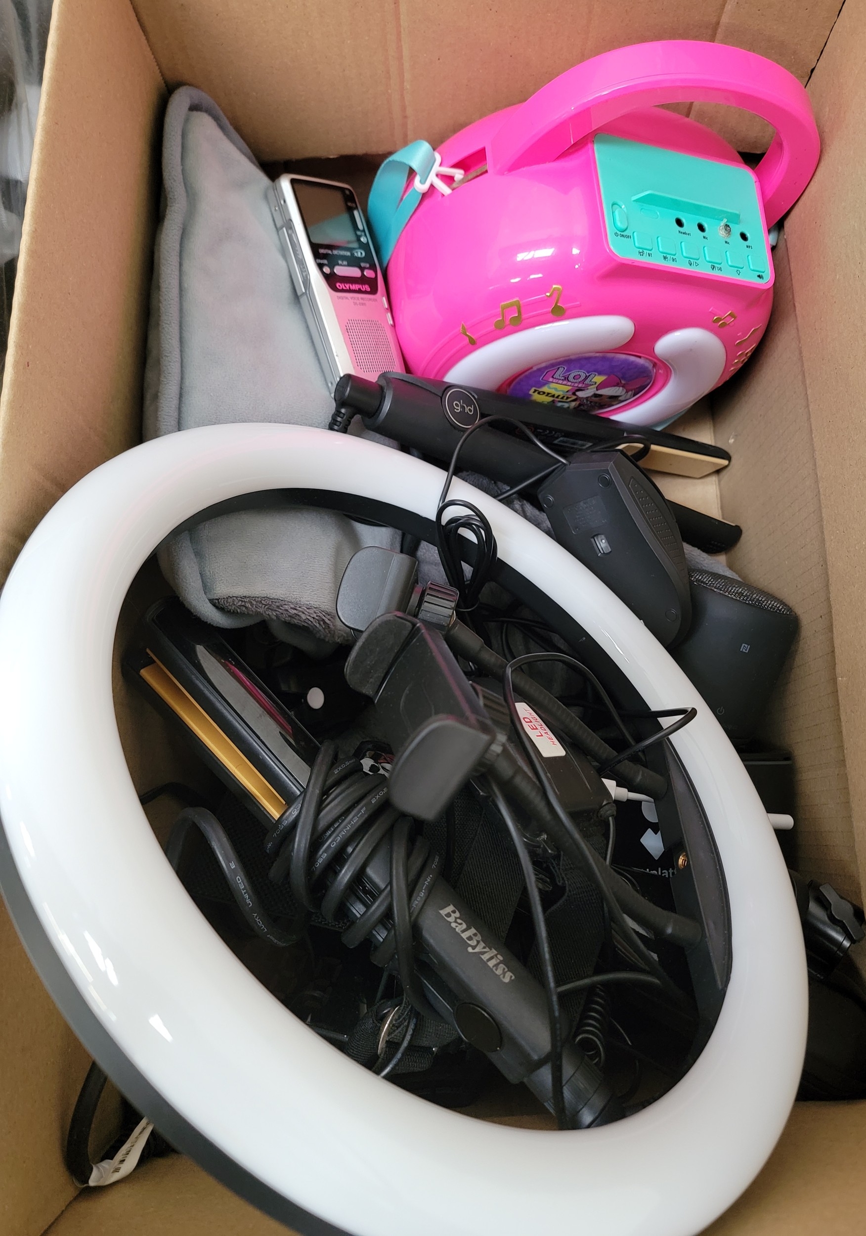 including: a heated blanket, hair straighteners, shavers, an alarm clock, ring light, and a dictation recorder