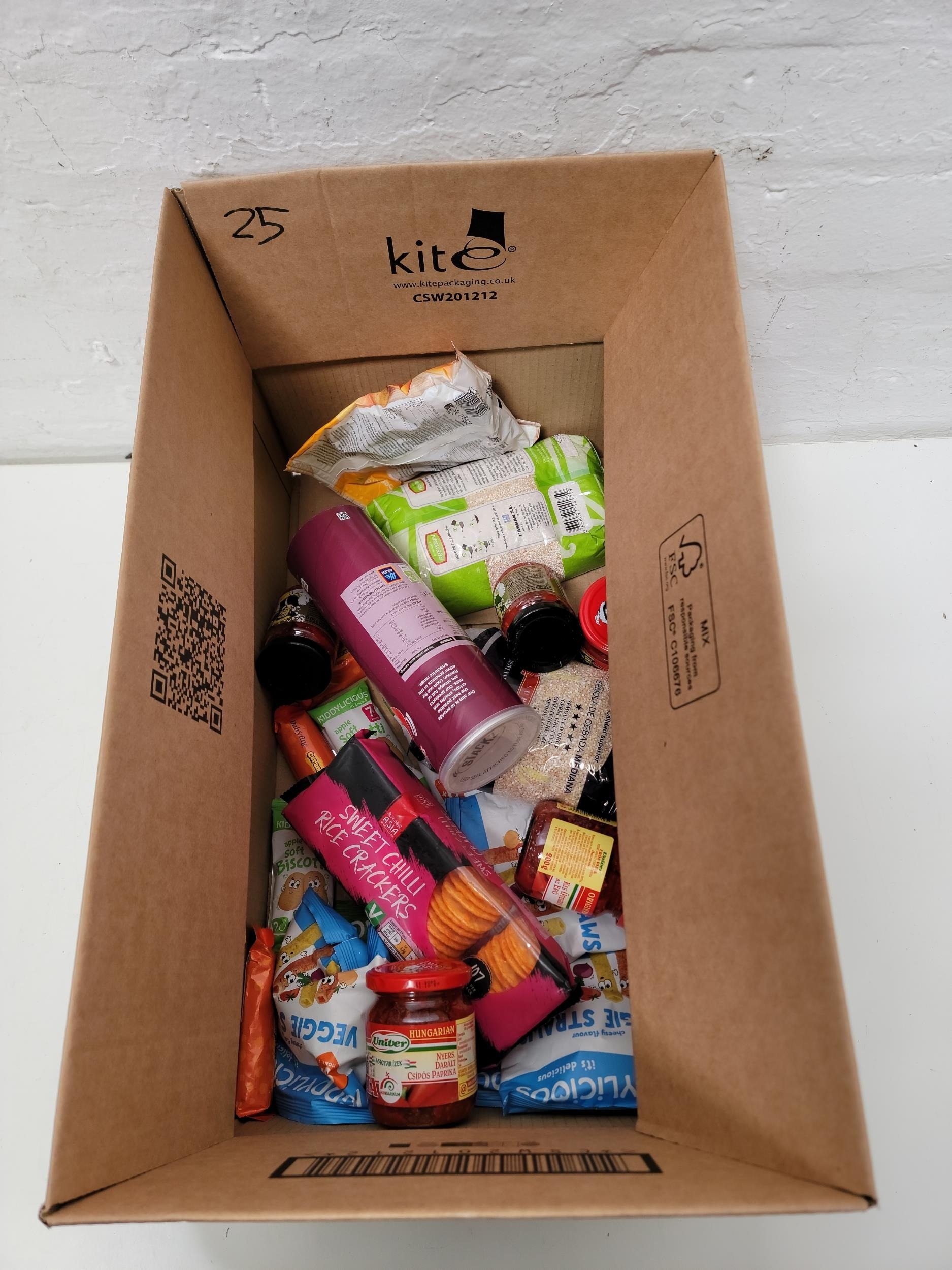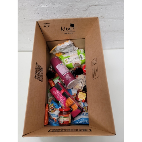 ONE BOX OF CONSUMABLES including: crisps, pesto, dried fruit, crackers, etc.