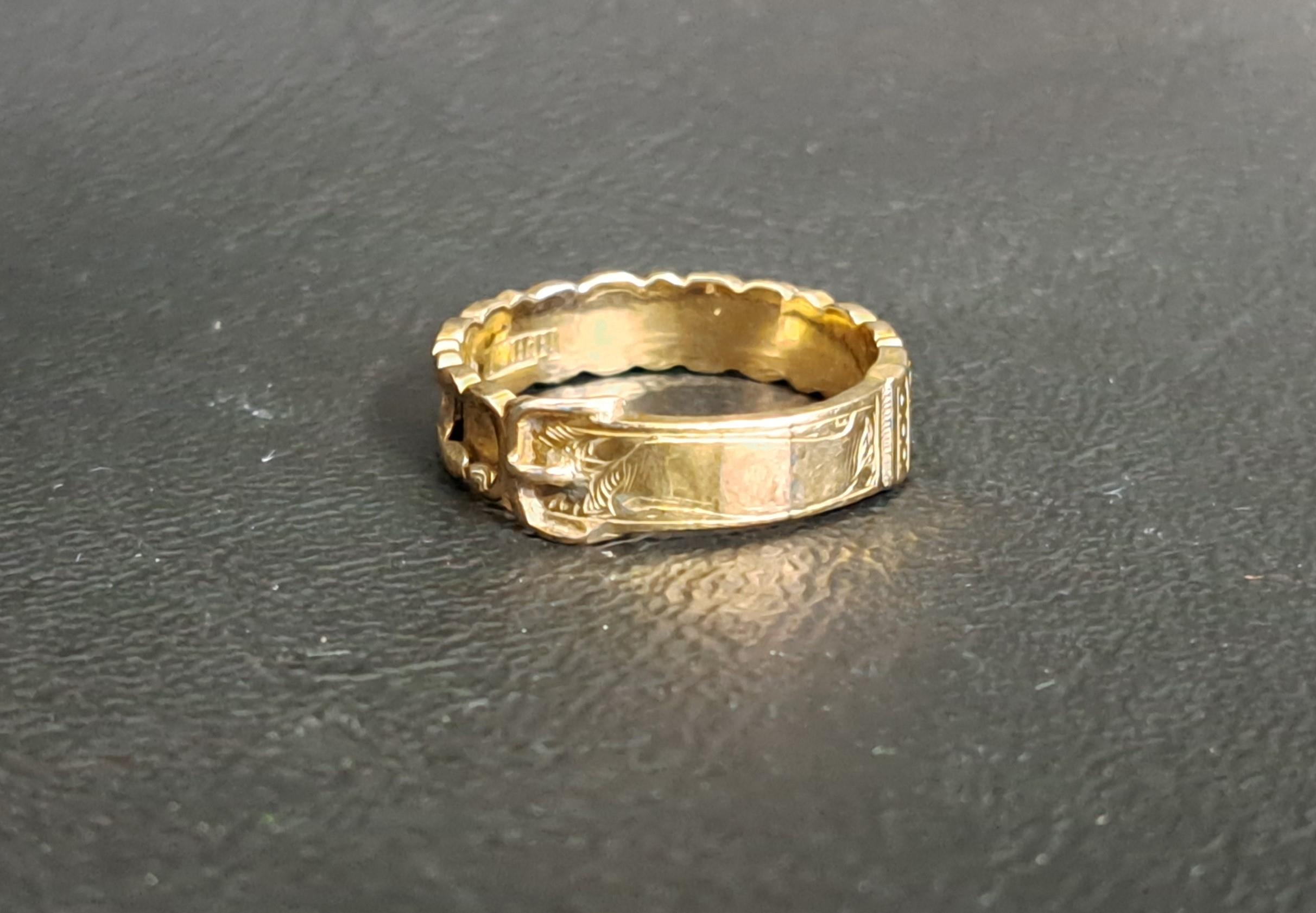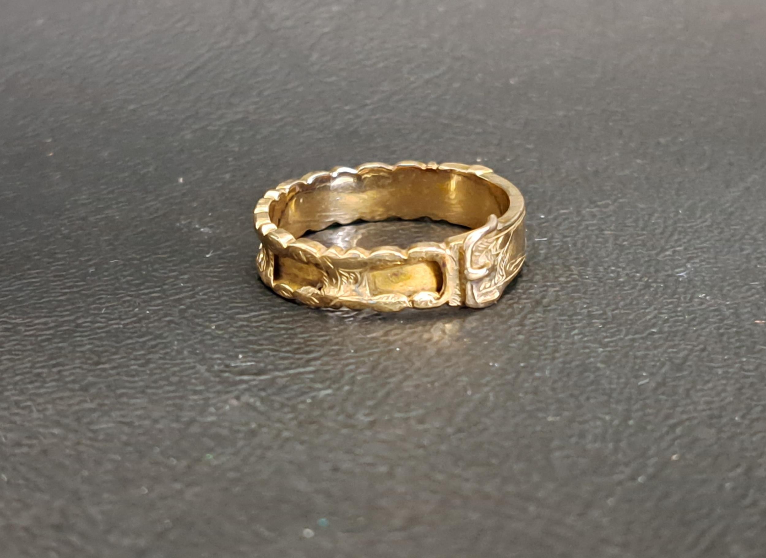 TEN CARAT GOLD BUCKLE DESIGN RING