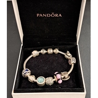 TWO PANDORA SILVER CHARM BRACELETS