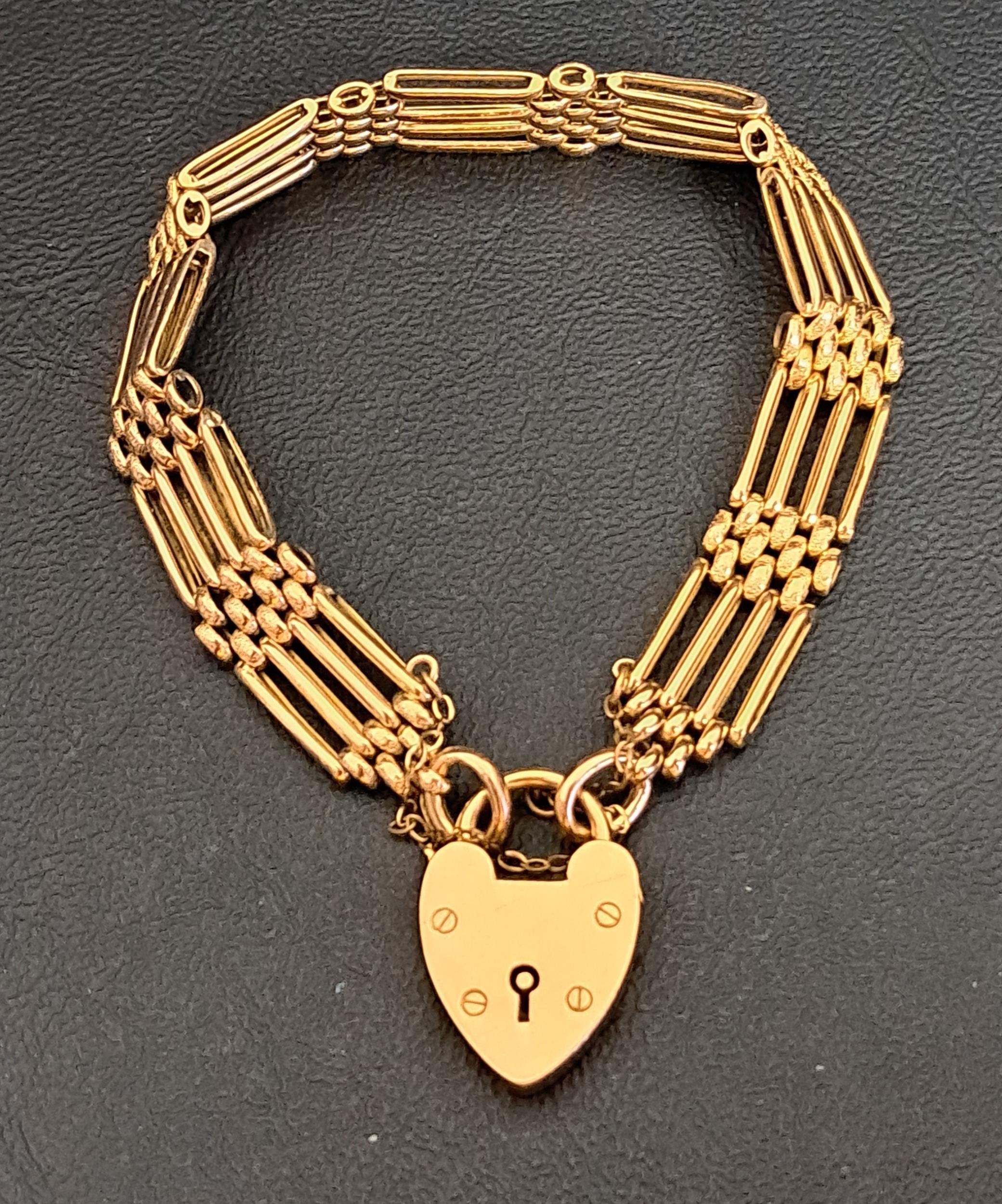 FIFTEEN CARAT GOLD FOUR BAR GATE BRACELET