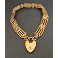 with fifteen carat gold heart padlock clasp and safety chain, approximately 21.3 grams