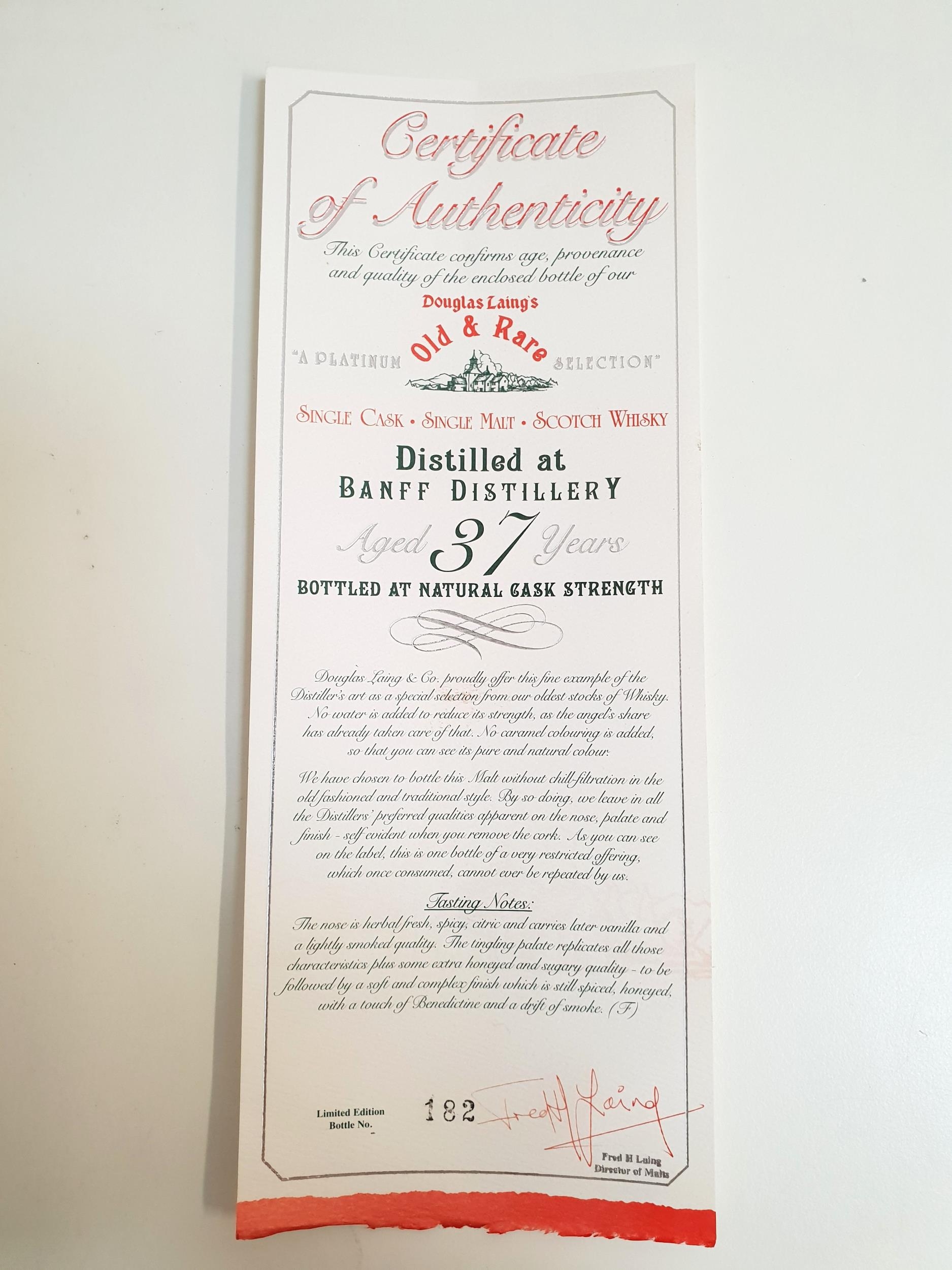 BANFF 37 YEAR OLD SINGLE MALT SCOTCH WHISKY - DOUGLAS LAING'S OLD AND RARE