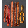 SIX VARIOUS CORAL, AMBER AND OTHER BEAD NECKLACES of various...